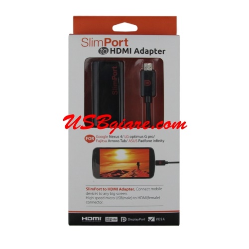 Cáp Slimport to HDMI adapter chuyển đổi cổng sạc Micro USB sang cổng HDMI sử dụng cho các dòng điện thoại Google Nexus 4 Google Nexus 7 LG Optimus G Pro LG G2 Fujitsu Arrows Tab Asus Padfone ... kết nối với TV qua cổng HDMI.