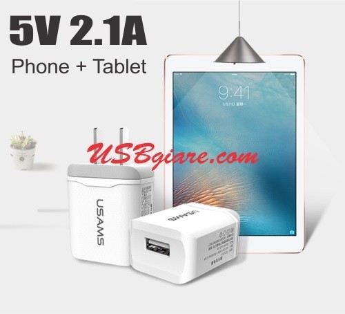 Cóc sạc 5V 2.1A sạc Phone + Tablet Usams US-CC017