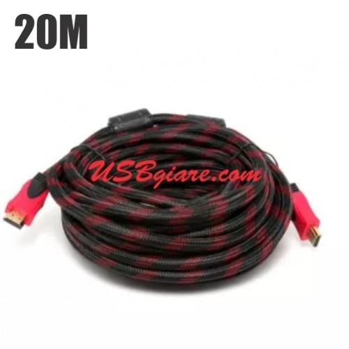 Cáp HDMI 20M dây lưới sọc đỏ đen