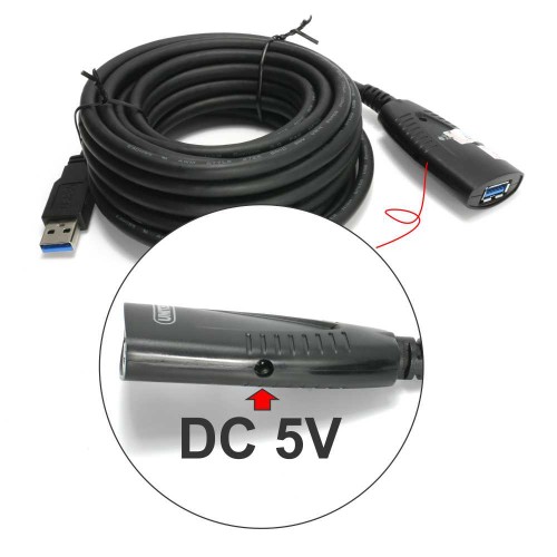 Lưu ý: việc cấp nguồn là không bắt buộc; chỉ cấp nguồn trong trường hợp thiết bị của bạn không hoạt động, hoặc hoạt động chập chờn do suy hao nguồn khi nối dài qua dây cáp USB 3.0 nối dài 5M này. Trong trường hợp đó bạn phải mua thêm cục nguồn Adapter 5V 2A đầu 3.5mm, hoặc dây nguồn cổng USB ra đầu DC 3.5mm.