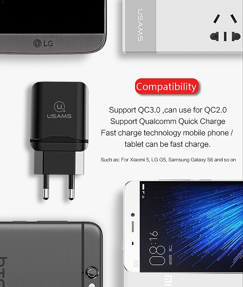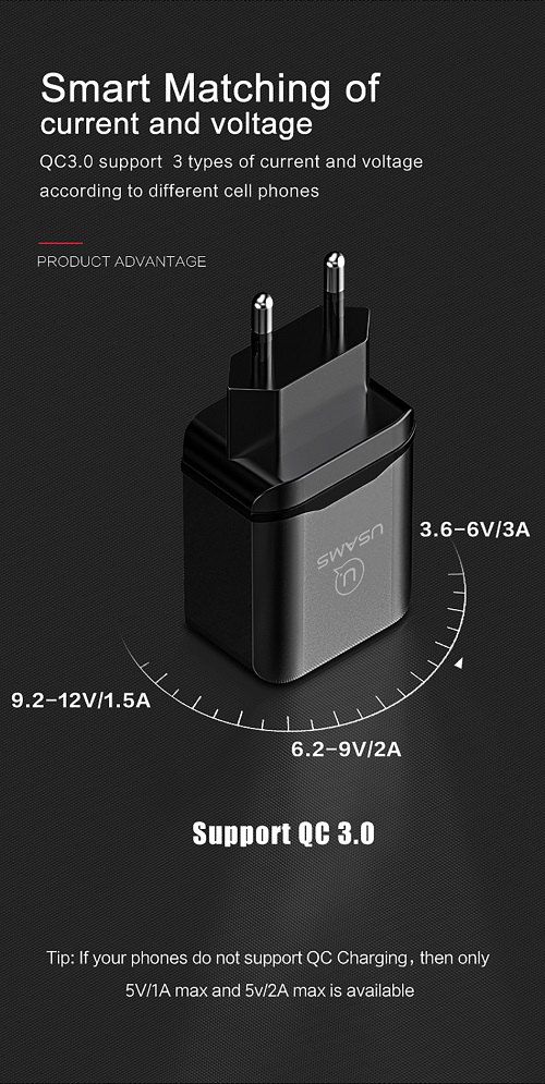 Cóc sạc nhanh Qualcomm Quick Charger QC3.0 18W Usams US-CC024
