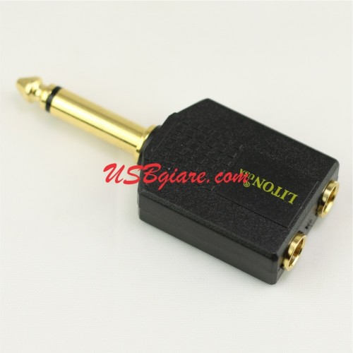 Jack chia cổng micro 6.5mm (6ly) 1 đầu đực ra 2 đầu cái mạ vàng Liton. Sử dụng để chia cổng Micro Karaoke trên amply