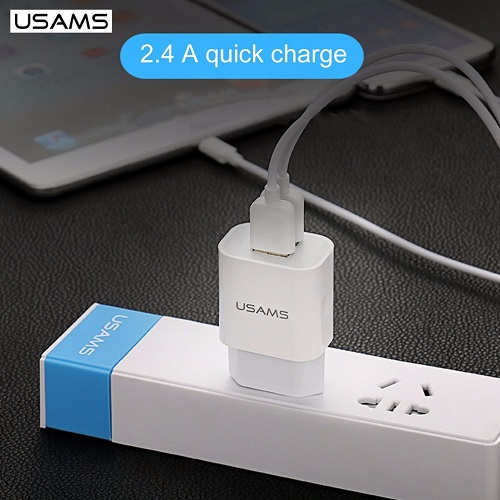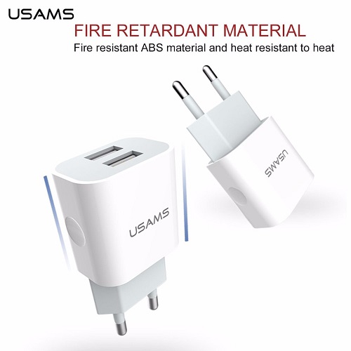 • USAMS Dual USB Charger sạc đồng thời 2 thiết bị với tốc độ nạp tối ưu, tổng dòng ra tối đa 2.4A.
