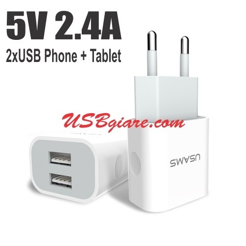 Cóc sạc 5V 2.4A 2 cổng USB sạc Điện thoại và Máy tính bảng Usams US-CC023