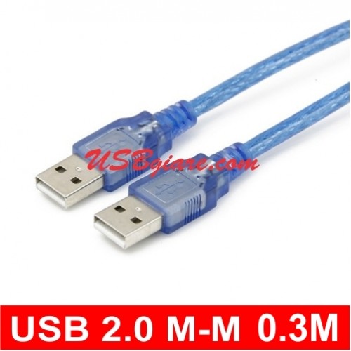 Cáp USB 2 đầu đực 0.3M (dây xanh)